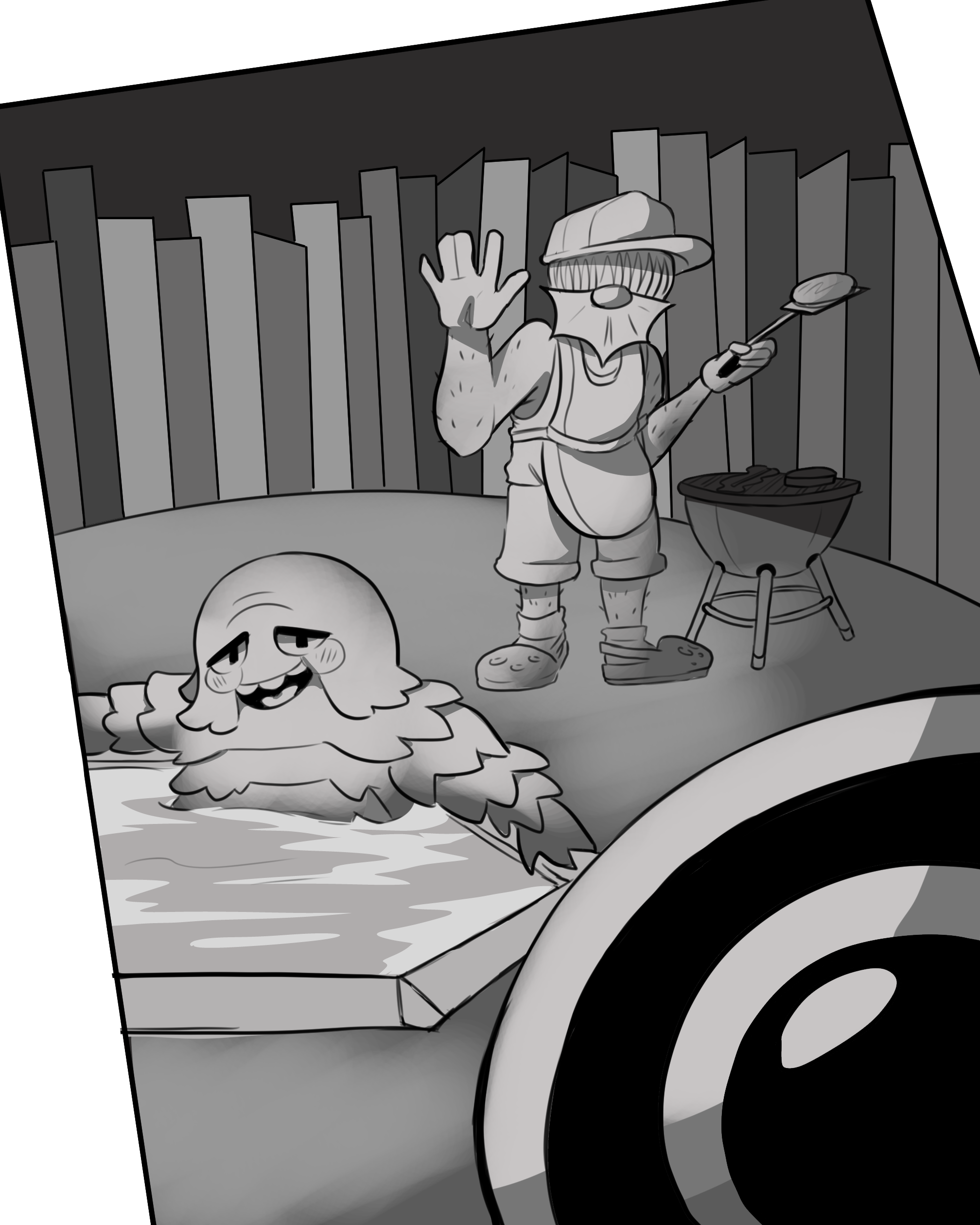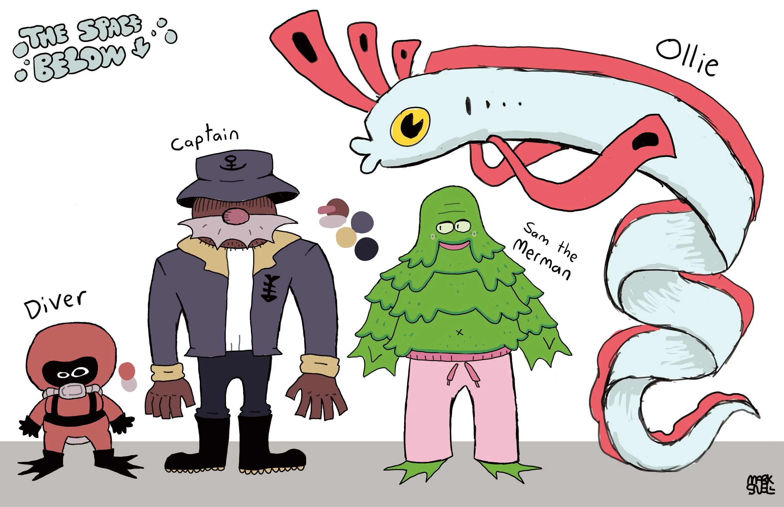 The Space Below characters were a collaborative effort as we made changes a few times to fit the needs of the museum. The Captain was primarily my design as I wanted him to seem more stoic and mysterious. The Merman was originally much more angled but we rounded the design to seem more friendly and I added the pink sweatpants as an extra measure.